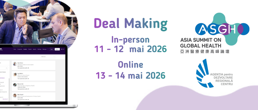 Agenția pentru Dezvoltare Regională Centru, în calitate de membru al consorțiului BISNet Transylvania și punct local de contact Enterprise Europe Network (EEN) – cea mai mare rețea de sprijin pentru afaceri și inovare – aduce în atenția companiilor și insituțiilor din domeniul sănătății evenimentul de matchmaking (în format hibrid) din cadrul Summit-ului Asiatic privind Sănătatea Globală (ASGH), organizat la Hong Kong în zilele de 11-14 mai 2026.